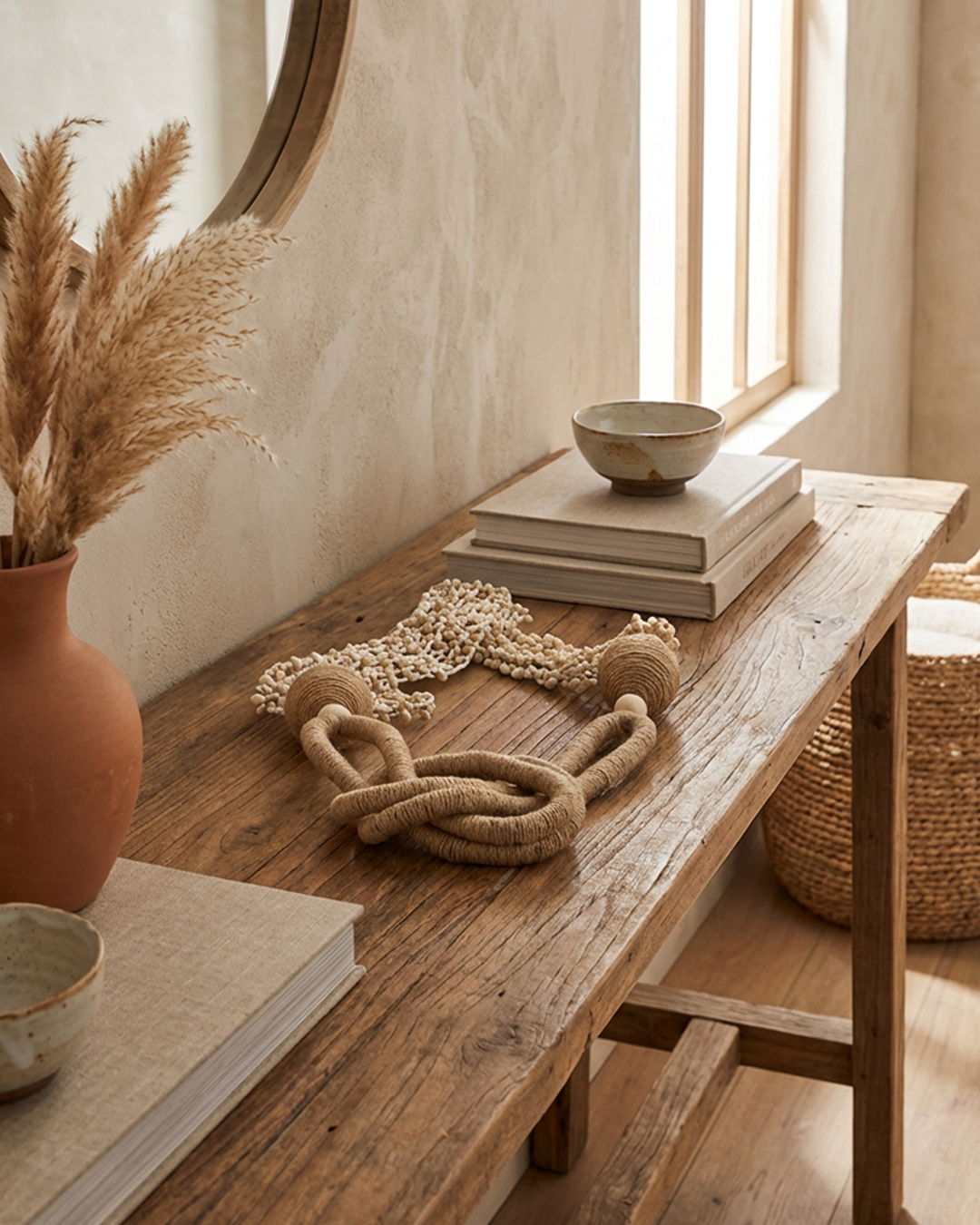 É uma peça que se coloca como ponto de ancoragem no espaço ideal para aparadores, entradas ou superfícies onde o olhar desacelera e permanece.